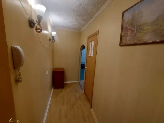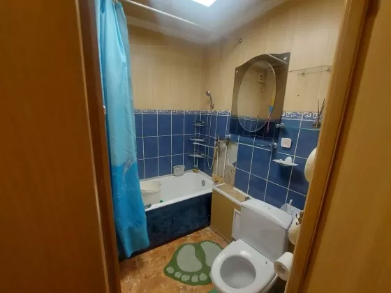 В Квартире сделан косметический ремонт, двойная входная дверь, межкомнатные двери старого образца, окна ПВХ, на полу в гостиной постелен ковролин, в остальных комнатах линолеум, присутствует вместительная кладовка, отопление чугун. Санузел совмещён, облицован кафельной плиткой, сантехника в рабочем состоянии. Установлены приборы учёта.