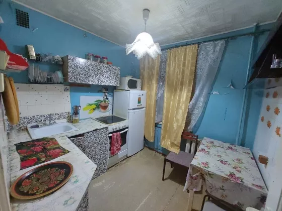 Дом серии Хрущевка, кирпич, возможность перепланировки, хорошая тепло и звукоизоляция, чистый подъезд, оборудован домофоном, во дворе детская игровая площадка, удобная открытая парковка.