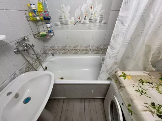 В квартире сделан косметический ремонт, входная дверь нового образца, окна ПВХ, балкон застеклён, на полу постелен ковролин, в спальне ковёр, на потолке потолочная плитка, санузел раздельный, облицован панелями ПВХ, на полу кафельная плитка, была проведена капитальная замена канализаций, заменены все батареи, отопление биметалл. Установлены приборы учета.