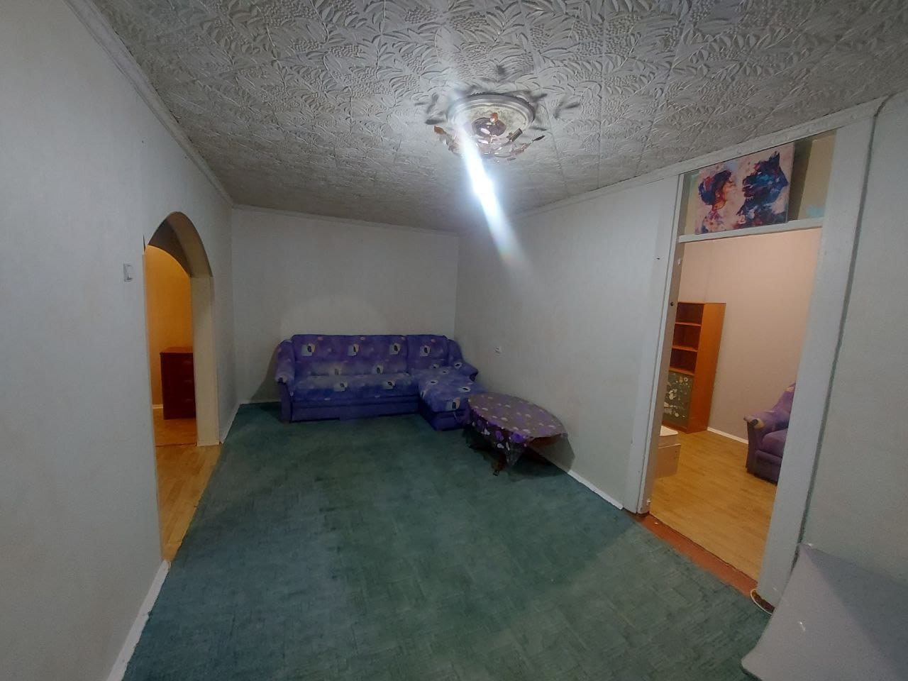 В Квартире сделан косметический ремонт, двойная входная дверь, межкомнатные двери старого образца, окна ПВХ, на полу в гостиной постелен ковролин, в остальных комнатах линолеум, присутствует вместительная кладовка, отопление чугун. Санузел совмещён, облицован кафельной плиткой, сантехника в рабочем состоянии. Установлены приборы учёта.