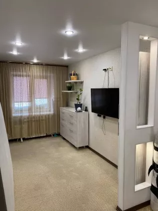 2-комнатная студия. В квартире сделан очень хороший косметический ремонт, узаконенная перепланировка, входная и межкомнатные двери нового образца, окна ПВХ, во всей квартире сделан натяжной потолок, нижняя подводка полов и электрика заменена. Отопление биметалл. Санузел совмещен, облицован кафельной плиткой, сантехника новая. Установлены приборы учета.
